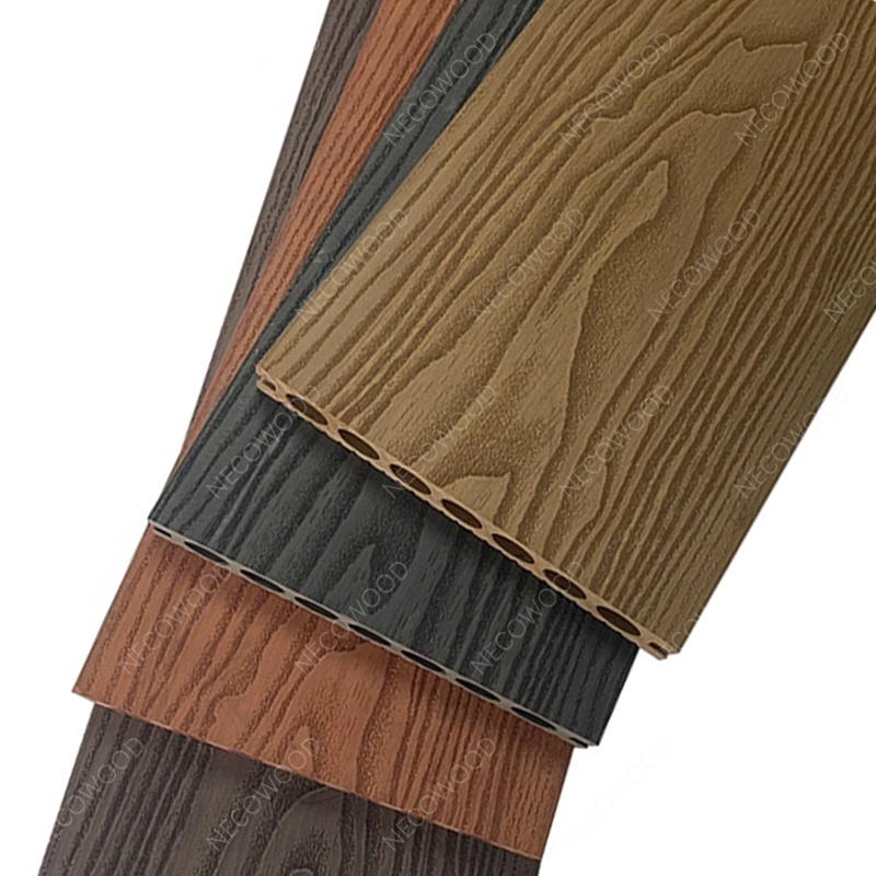 2세대 공압출 WPC 데크는 폴리에틸렌(PE)과 천연 목재 섬유를 결합합니다. 공압출 공정에서는 이러한 층을 융합하여 뒤틀림, 균열 및 습기에 강한 보드를 만듭니다. 재활용 가능한 재료로 제작된 이 데크는 야외에서 잘 작동할 뿐만 아니라 환경 친화적인 기준을 충족하므로 지속 가능한 가정 및 상업용 프로젝트에 적합합니다.
