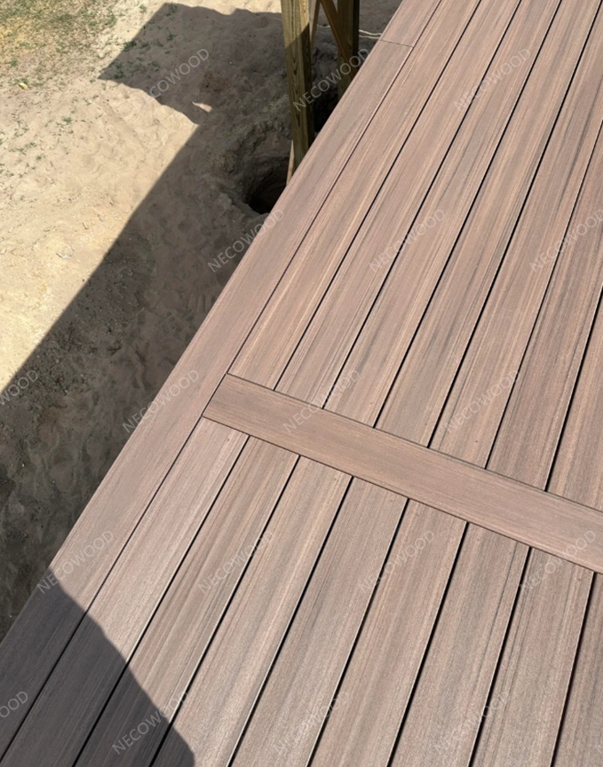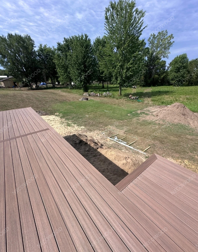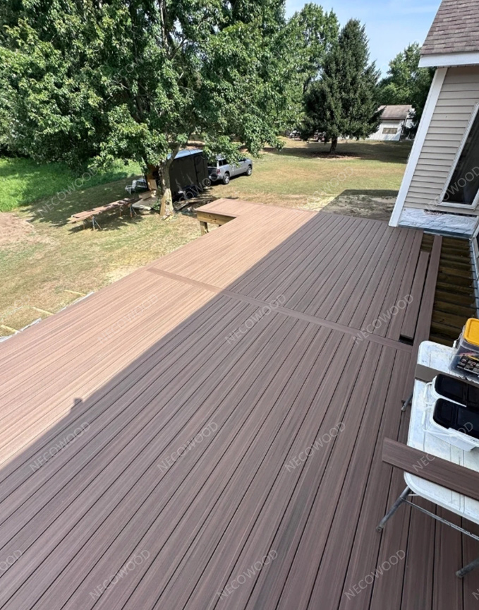 미드 웨스트 가족은 기후 저항력이 낮은 유지 보수 바닥재로 갑판을 변형시킵니다 Necowood