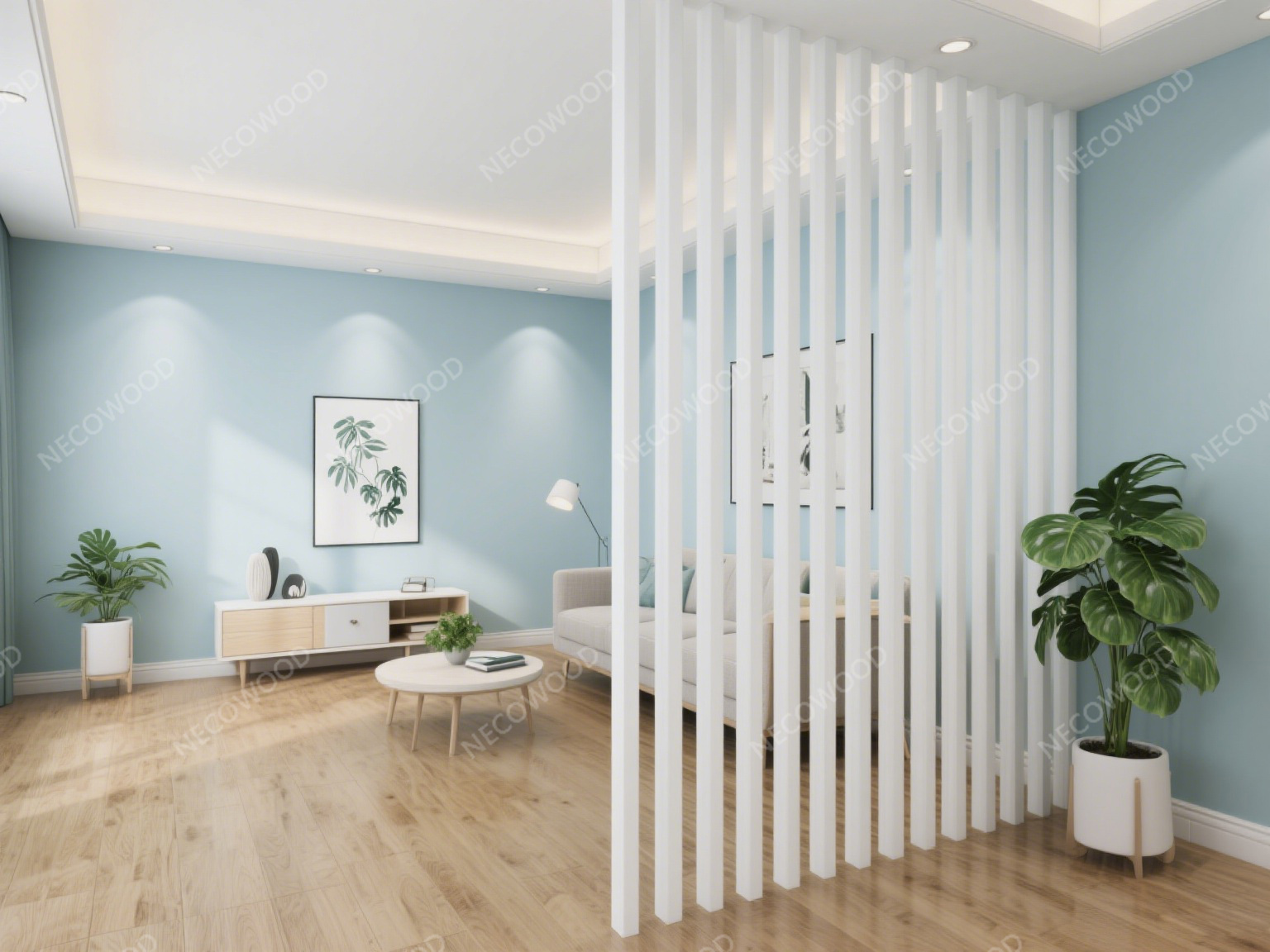 패널의 깨끗하고 선형 형태는 수직 또는 수평 설치를 지원하므로 장식실 분배기, 악센트 벽 또는WPC 파티션 패널열린 레이아웃에서. 거실, 사무실 또는 소매점에서 시각적 구조를 유지하면서 빛의 흐름을 향상시킵니다.