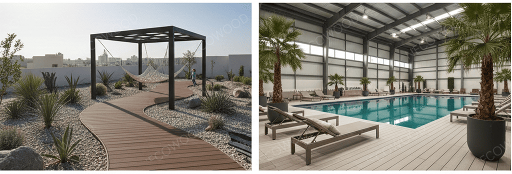 쿠웨이트의 고급 주거 부문에서 야외 생활 공간은 집의 연장선입니다. 기온이 급등함에 따라 주택 소유자와 도급업체는 전통적인 목재에서 벗어나 목재로 이동하고 있습니다.복합 데크, 데크 보드 목재 대안, 그리고에코 데크 보드.